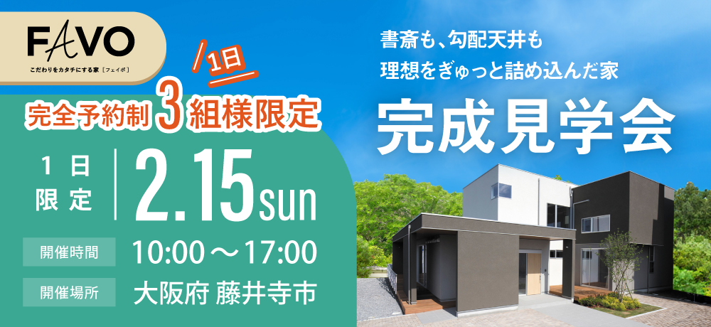 実際に完成した住まいをご覧いただける「完成見学会」を開催します。