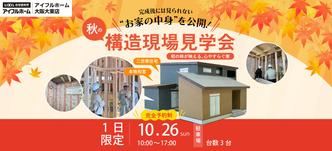 ひとつ屋根の下、ちょうどいい距離感で暮らせる二世帯住宅の住まいを実際の現場でご覧いただけます。