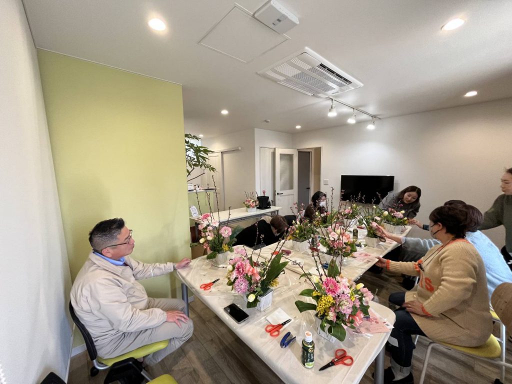 奈良生駒のフラワーズアンソフィールドさんにご協力いただき、ひな祭りのフラワーアレンジメント会を行いました。