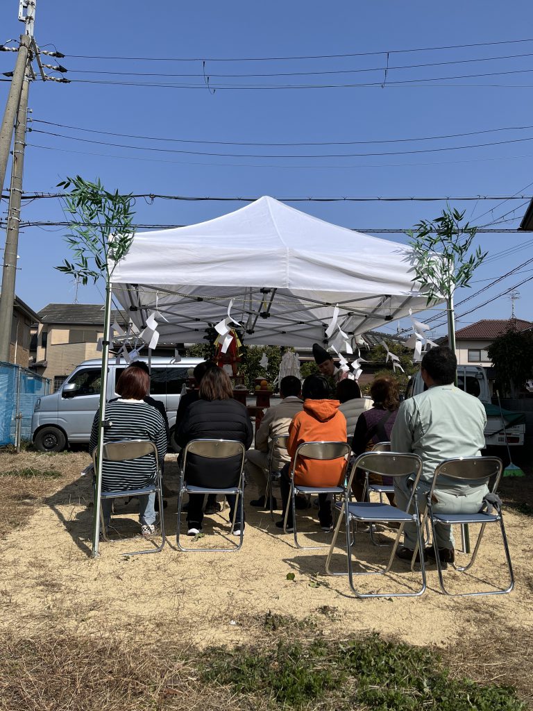 3月も中頃になり、春を迎える暖かい陽気で、地鎮祭日和でした。