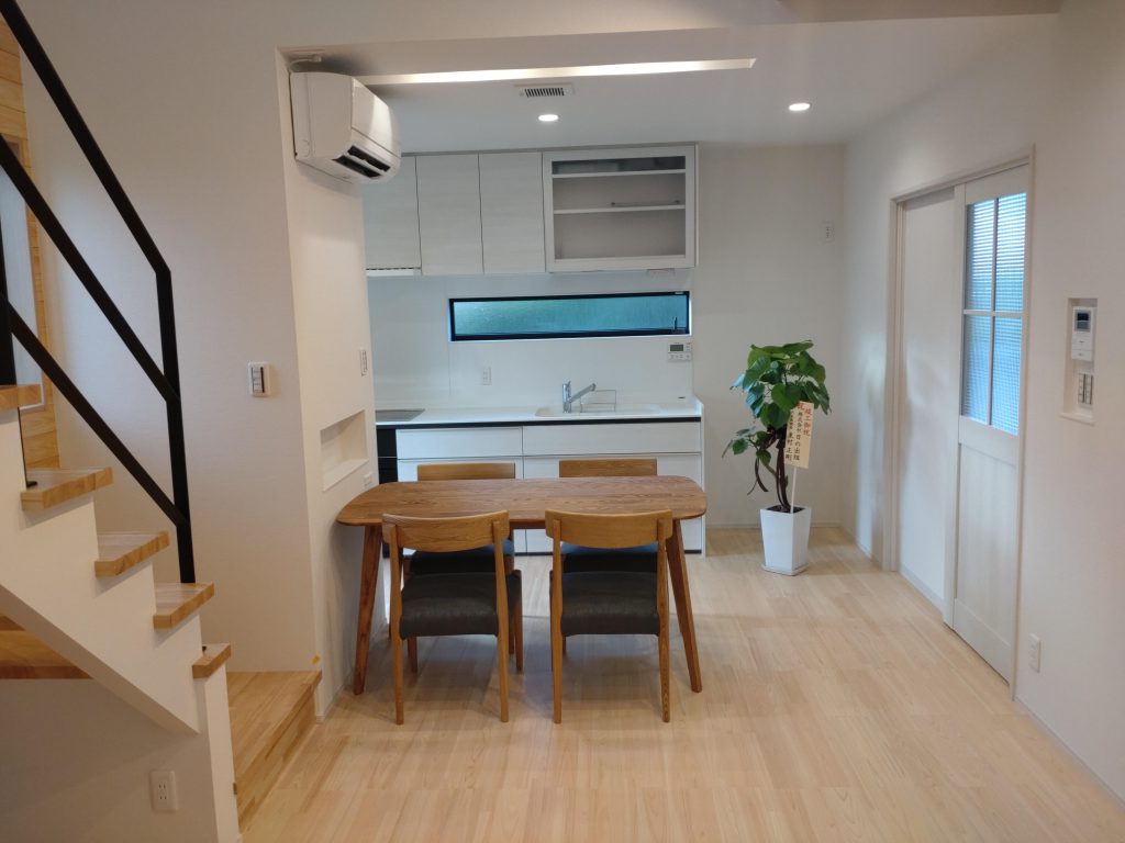 1階に和室が欲しかったのでLDKを13畳と小さくしたのでキッチンを対面式にするとキッチン部で約6畳必要になるのであえてI型キッチンを採用しキッチンスペースにダイニングテーブルを設置出来るようにした事
