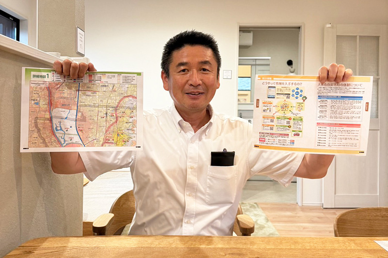 災害のリスクがあるという意識のもとで、ハザードマップを活用して災害時の被害想定や防災施設、避難ルートなどを確認して災害グッズを備えておきましょう。