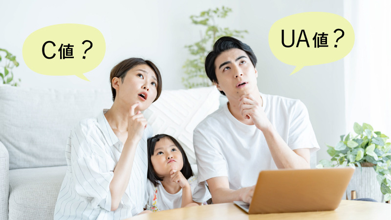 気密性を表す言葉として「C値」、断熱性能を計るものとして「UA値」があります。