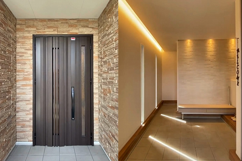 2WAY玄関は、それぞれの玄関を壁や仕切りで分けるため光が届きにくくなってしまい、やや暗く閉塞感のある印象になってしまうことがあります。これは、照明や窓の配置などを工夫して空間の演出を上手に行うことで解決できます。