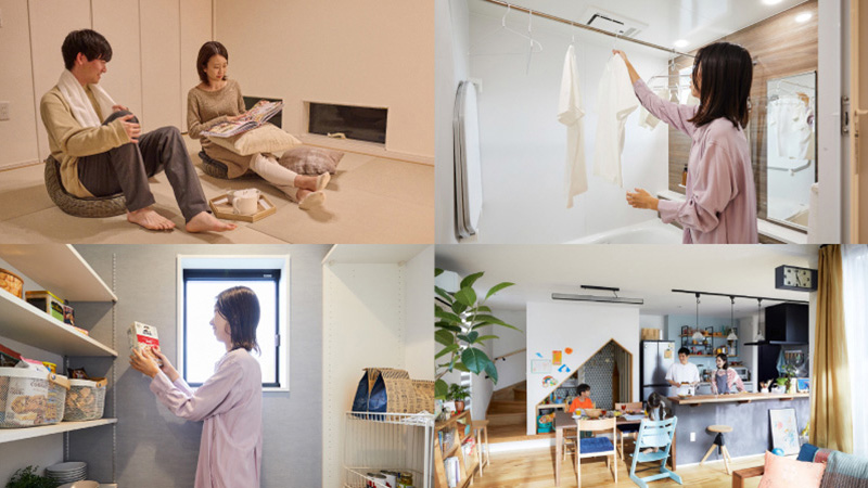 例えば、洗濯をしながら料理をする場合などを想定して、キッチン・ランドリー・洗面コーナーの使い勝手を配慮することで水回りの家事動線が実現可能です。