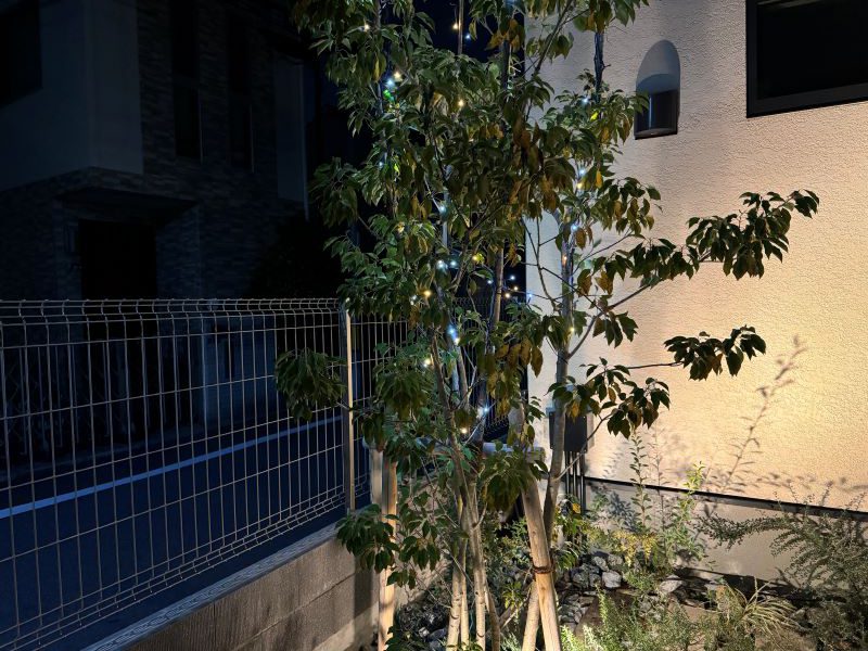 特にクリスマスシーズンには、外構のライトアップ演出が一層際立ち、庭全体に自然な彩りを添えますね。