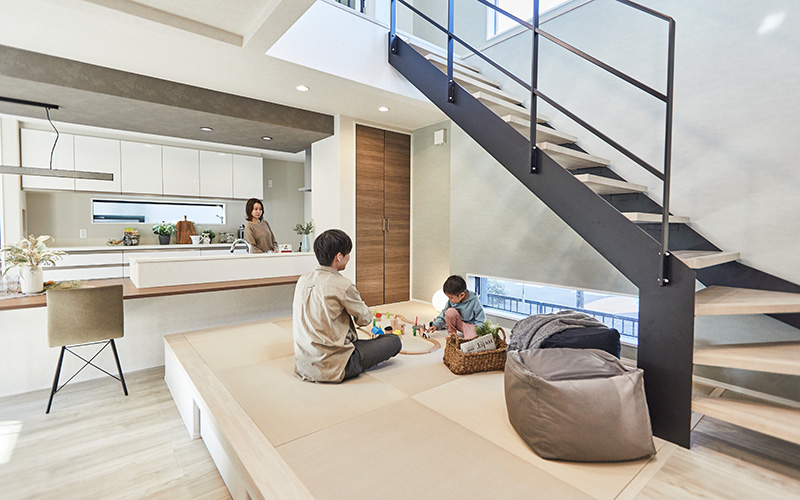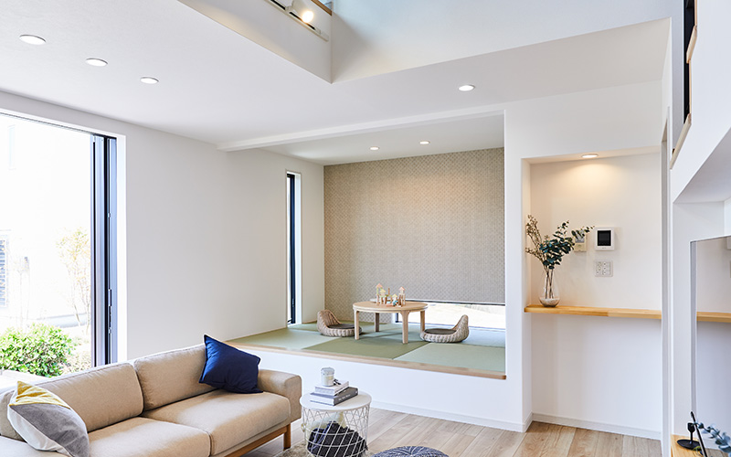 リビングとつながる和室は、子どもの遊び場や家事スペースなど多目的に活用したい場合におすすめ!