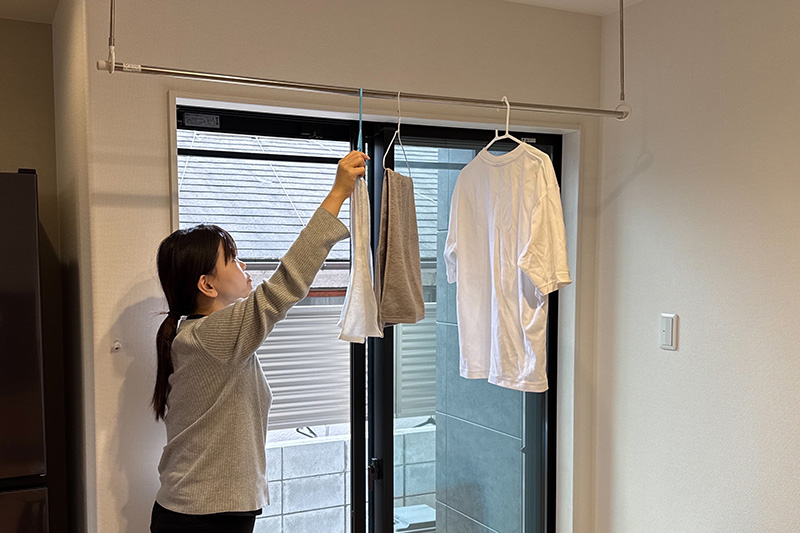 さらに、換気や除湿ができる設備と合わせれば、乾きやすさが変わり、部屋干しのにおいも防ぐことができます。
