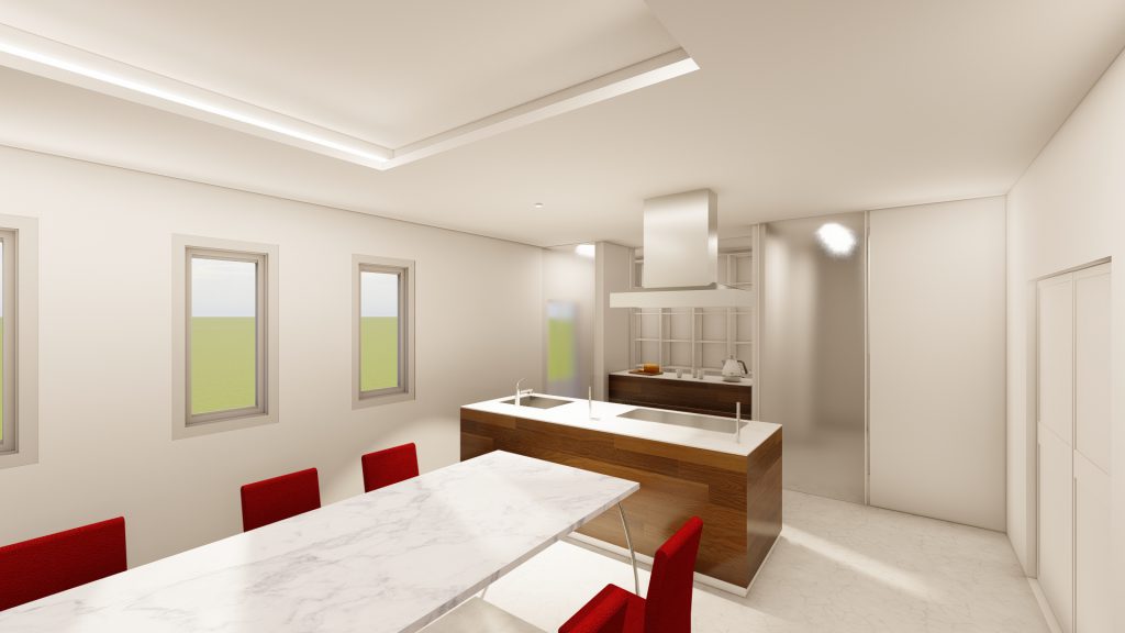 お客様をお招きできる応接室で、大人数にも対応できる大規模な食器置場も設置予定。