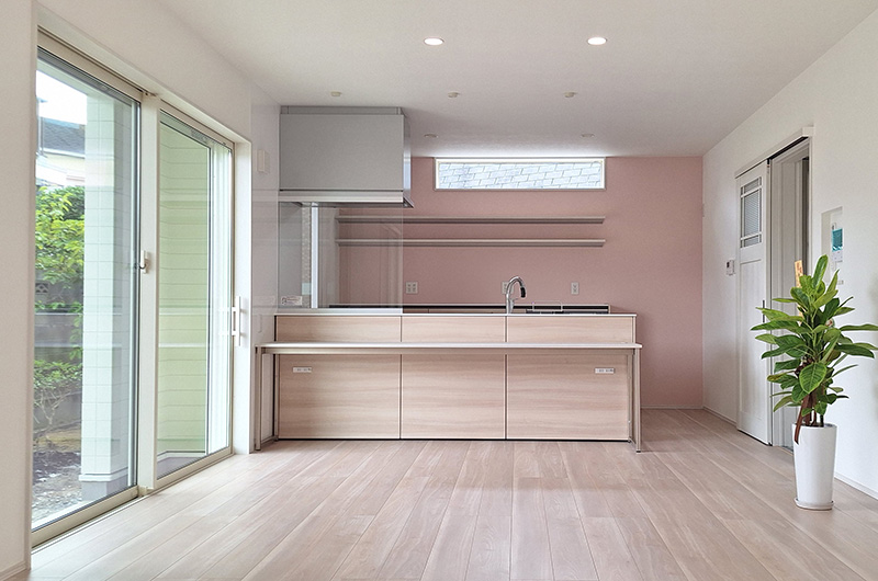 対面式のキッチンカウンターを採用しました。料理をしながら会話を楽しみ、家族の絆を深める場所となっています。