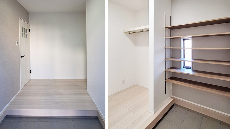 広々とした玄関と十分な収納スペースがあるお住まい