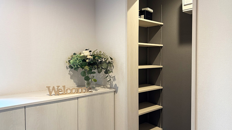 汚れたままの運動靴や部活道具も、そのままポイッと収納できて、玄関をキレイに保てるのが嬉しいですね。