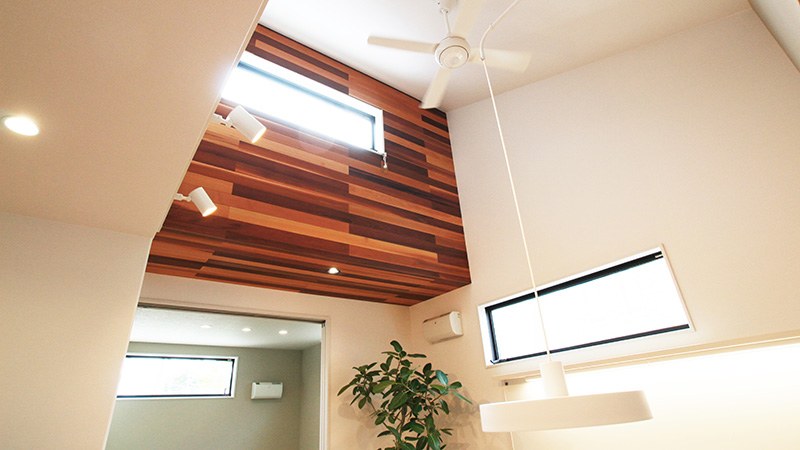 さらに注目してほしいのが、吹き抜けに設置されている「シーリングファン」。