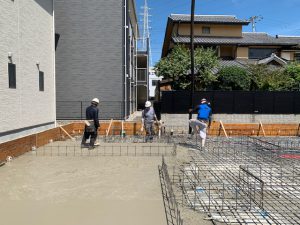 今回は、「子育て世代 理想の家事動線の家」基礎工事(生コンクリ-ト打設)の様子をお届けしました。