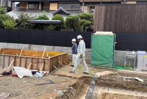 指定の検査員の方が現場に来られて基礎の検査を行い、合格しないと基礎工事を進める事が出来ません。