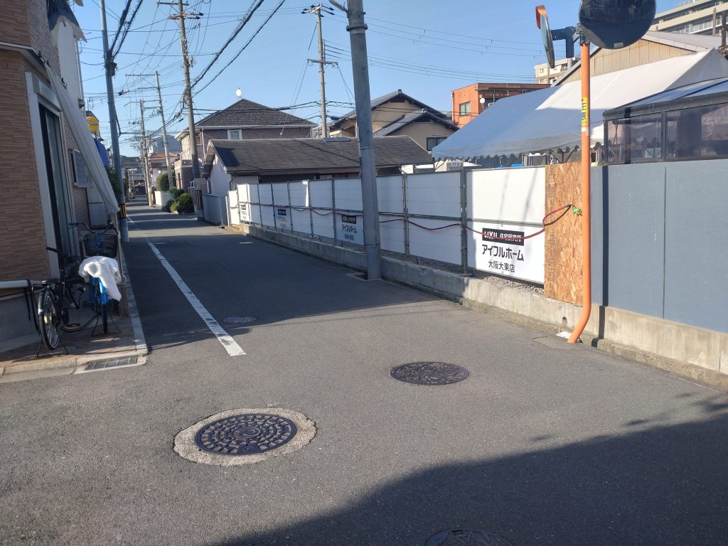 <事務所の敷地外から見ると、今まで倉庫が建っていたところがスッキリしました>