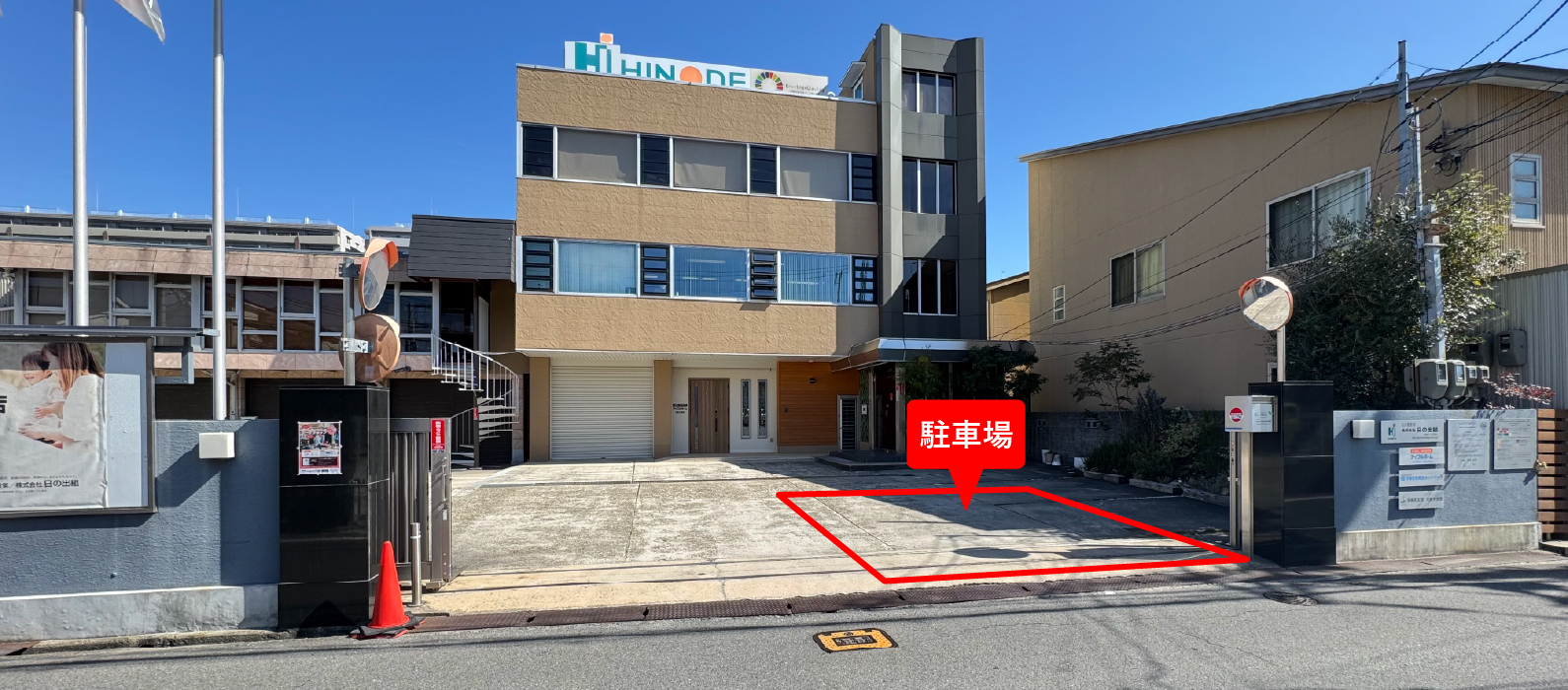 お車の方は:事務所敷地内駐車場をご利用ください。