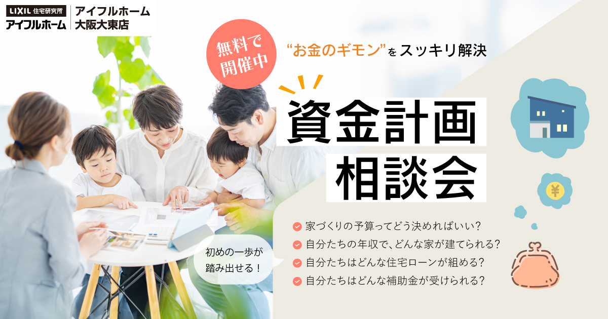 そんな皆さまの不安を解消する「資金計画相談会」を、アイフルホーム大阪大東店では無料で開催中です。