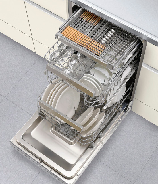 多湿な日本の気候に配慮したヒーター乾燥。約9人分の食器が洗浄可能。