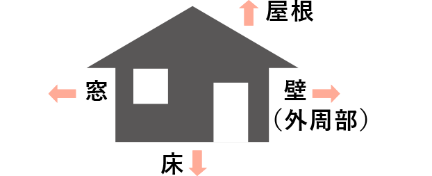 外皮表面積1m2あたりにおける、住まいの内側から外へ逃げる熱量を示した外皮平均熱貫流率