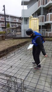 鉄筋の種類、ピッチ等図面通り相違ないか細かくチェックを行います。