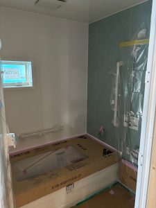 今週の月曜日には、ユニットバスの据付作業も行いました。