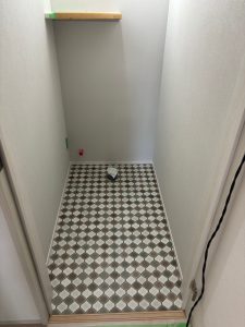 水廻りの床はCFシートを張りました。クロスを選定時にCFシートも検討に検討を重ね、確定していきました。仕上がり具合が楽しみです。