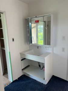 洗面化粧台・便器・収納BOX・エコキュート・照明器具等順次取付作業を行っています。