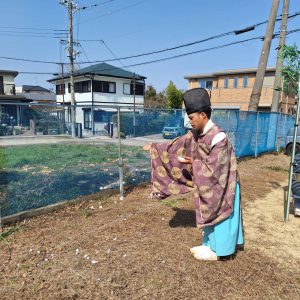 3月も中頃になり、春を迎える暖かい陽気で、地鎮祭日和でした。