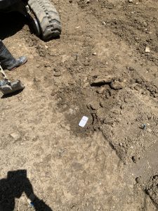 掘削して、残土搬出したあと、地鎮祭でいただいた鎮め物を埋納しました。