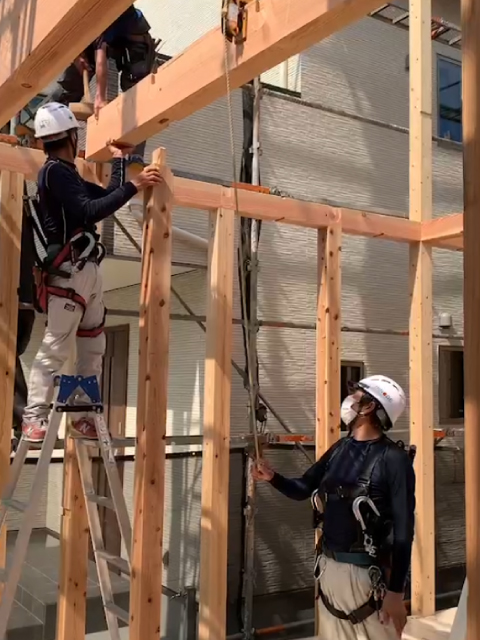 建て方3日目でやっと建物の形がわかるようになってきました。