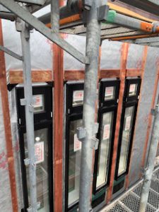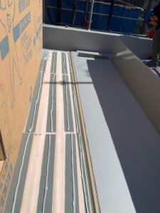 上棟が終るとまず雨仕舞をしなければいけないので、サッシの取り付け作業を行います。