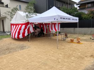 工事着手前にテントを設置し何かやってるのを見かけた事はあると思いますが、何故地鎮祭を行うか解らない方もおられると思いますので簡単に説明させて頂きます。