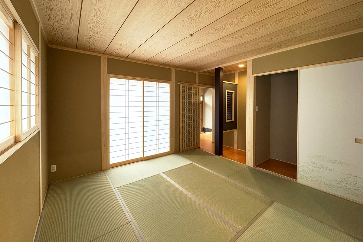 和の重厚感と、現代的な明るさが共存する居心地の良い空間です。