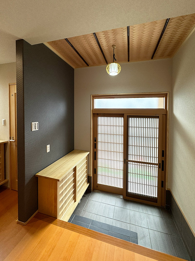 旧家で使用していた外灯や組子障子を再利用し、思い出と歴史を受け継ぐ住まいに仕上げました。