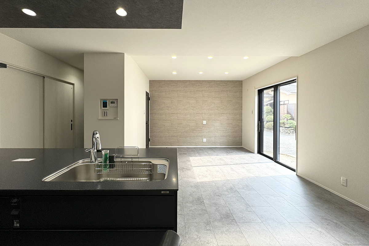 日当たりの良い南側にLDKを配置し、大型サッシからたっぷりの陽ざしを取り込みます。キッチンはLDK全体を見渡せる位置に設計。