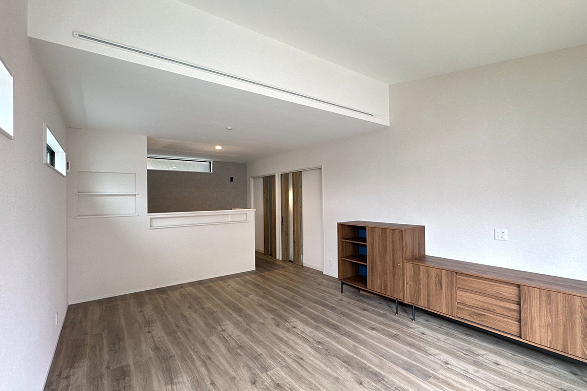 高さを活かした設計により、広がりを感じられる開放的なLDKに仕上げました。