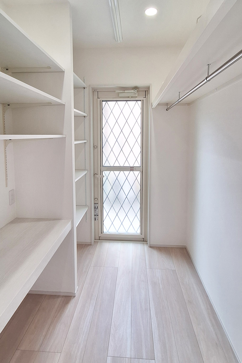 パントリーを隣接させることで、食材や調理器具の出し入れがしやすく、整理整頓も簡単です。
