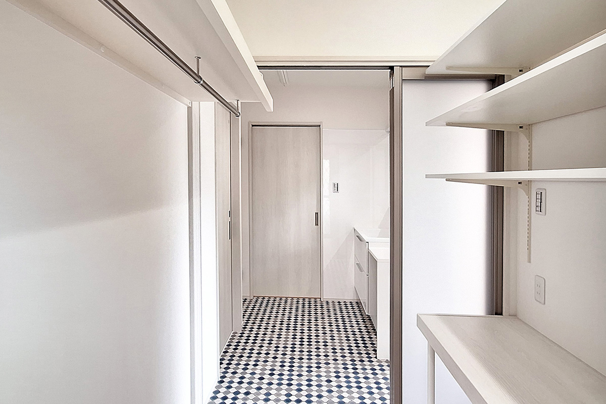 家事の効率化を図るため、洗面所、脱衣所、ウォークインクローゼットを一つのエリアに集約しました。