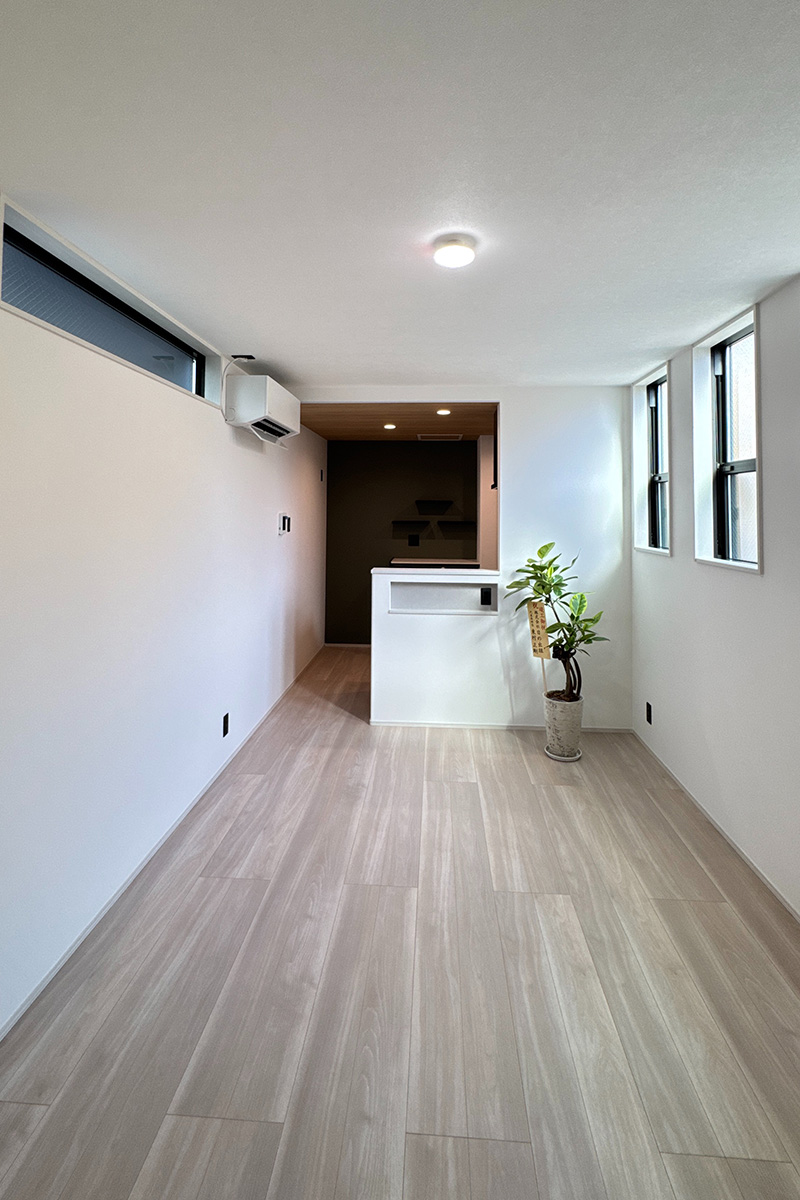 奥行きを強調することで、狭小住宅特有の閉塞感を軽減し、広々とした印象を与えます。