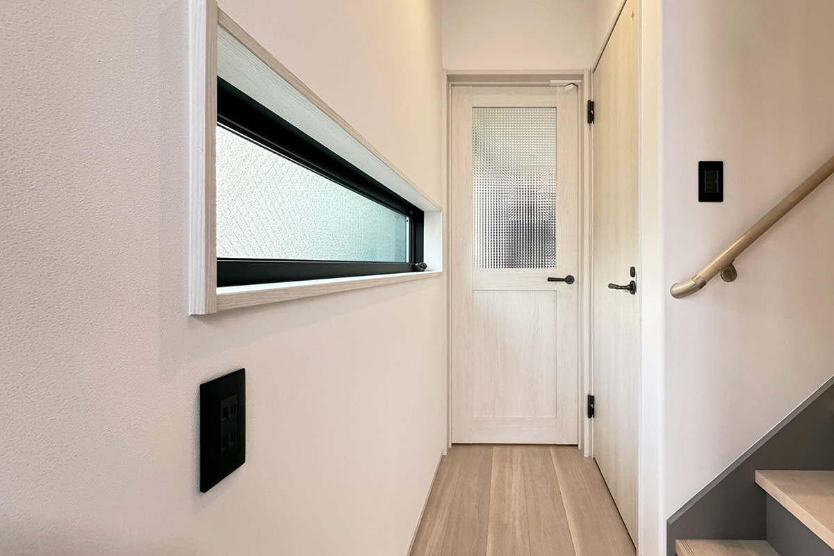 2階は廊下から寝室、洗面までを一直線に配置しました。