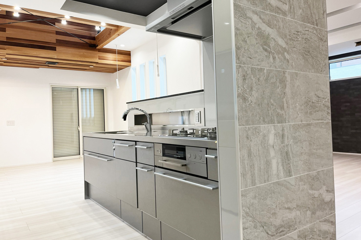 キッチン、ダイニング、リビングが一体となったオープンスペースは、家事をしながらでも家族との会話を楽しめます。