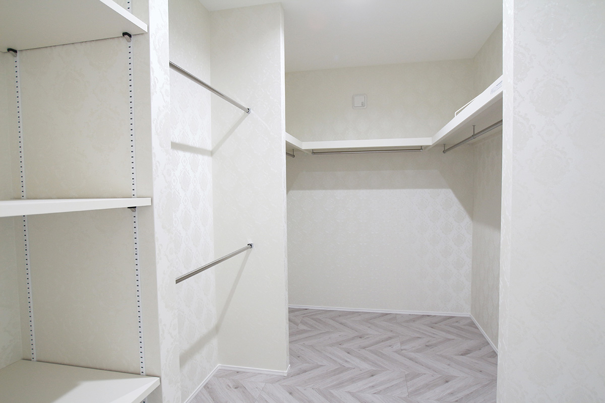 各洋室にはクローゼットが完備され、贅沢なほどのスペースが確保されています。さらに、応接室には広々としたパントリーが配置され、おしゃれな空間を演出します。