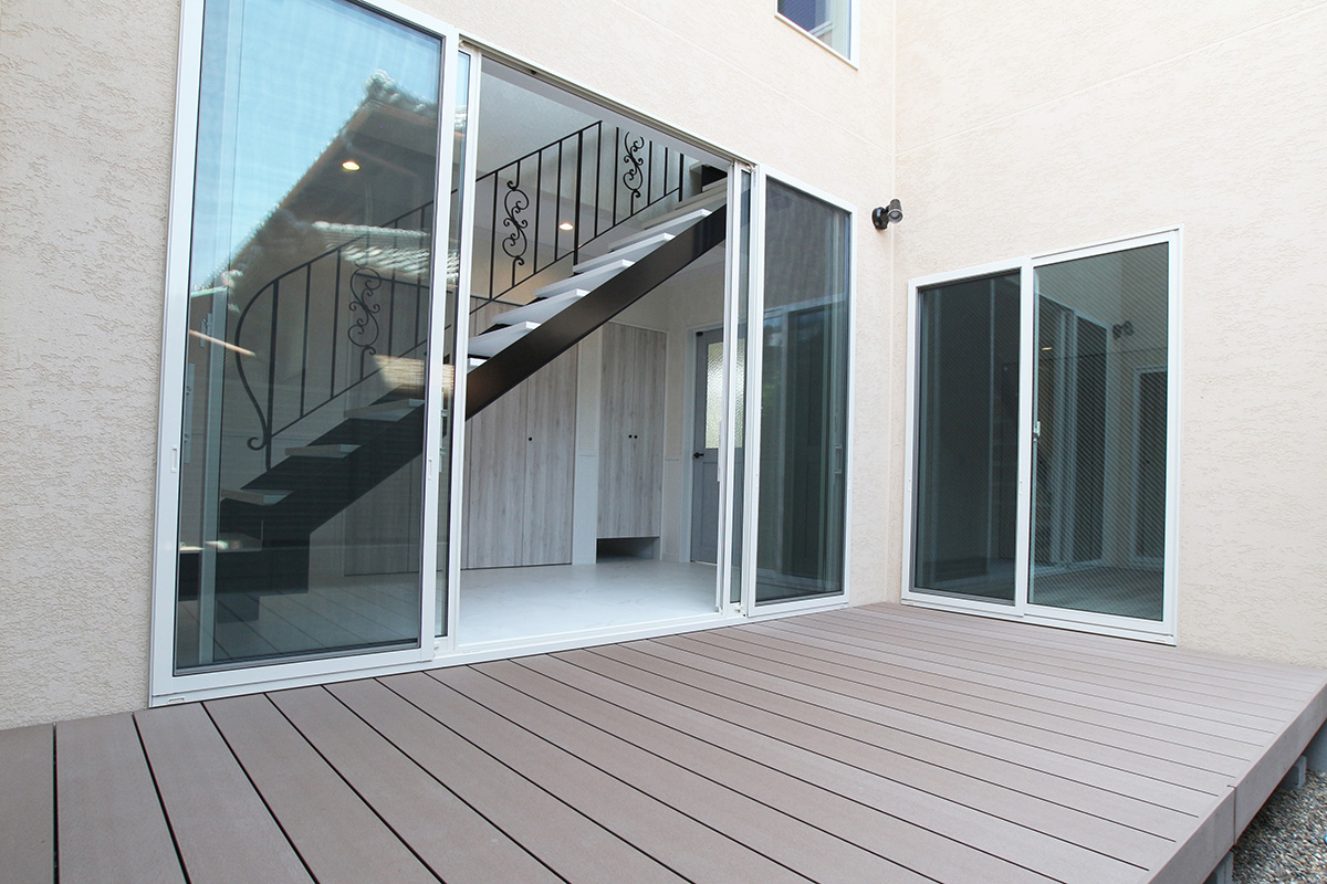 その中庭に面した場所には、エレガントなアイアンのオープン階段を配置することで、一層の開放感を演出。